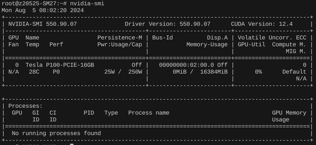 If the drivers are installed successfully, the nvidia-smi utility displays a current GPU state