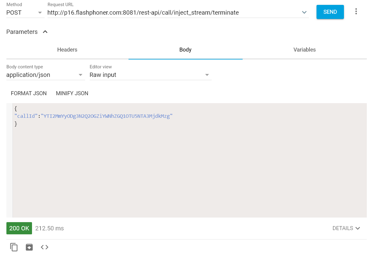 pbx_t0– WCS SIP trunk namelocalPort– port to receive incoming SIP callsproxyIp– PBX addressremotePort– PBX port to registerurl– RTMP server URL to republish SIP call streamvisibleName- name to display to caller, this name is sending to PBX when registersdp– SDP to send to PBX in 200 OK responsesdpParams- parameter to insert to SDP for SIP call media bitrate and channel bandwidth management
