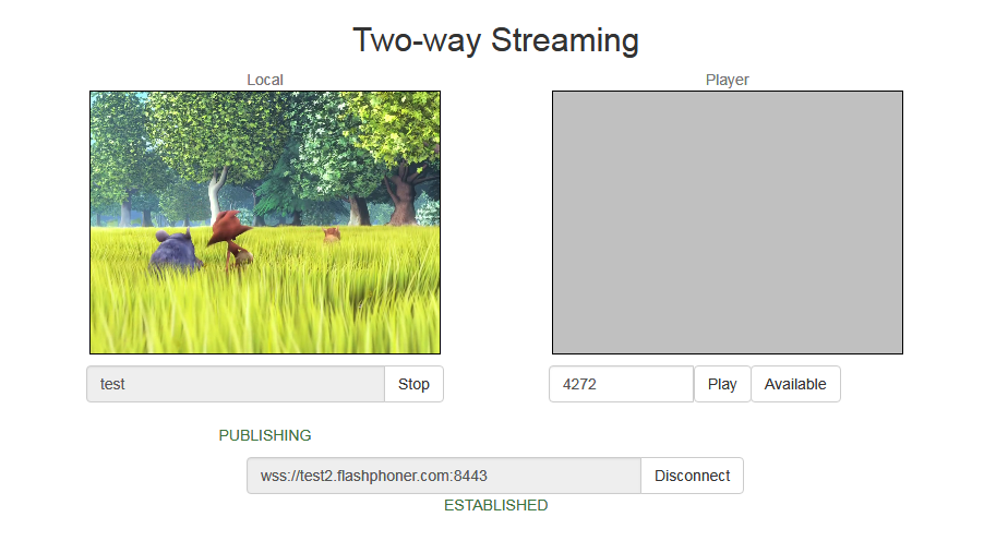 test.flashphoner.comis WCS server address8081is a standard REST / HTTP port of WCS server8444is a standard HTTPS portrest-apiis mandatory URL prefix/transcoder/startupis REST query