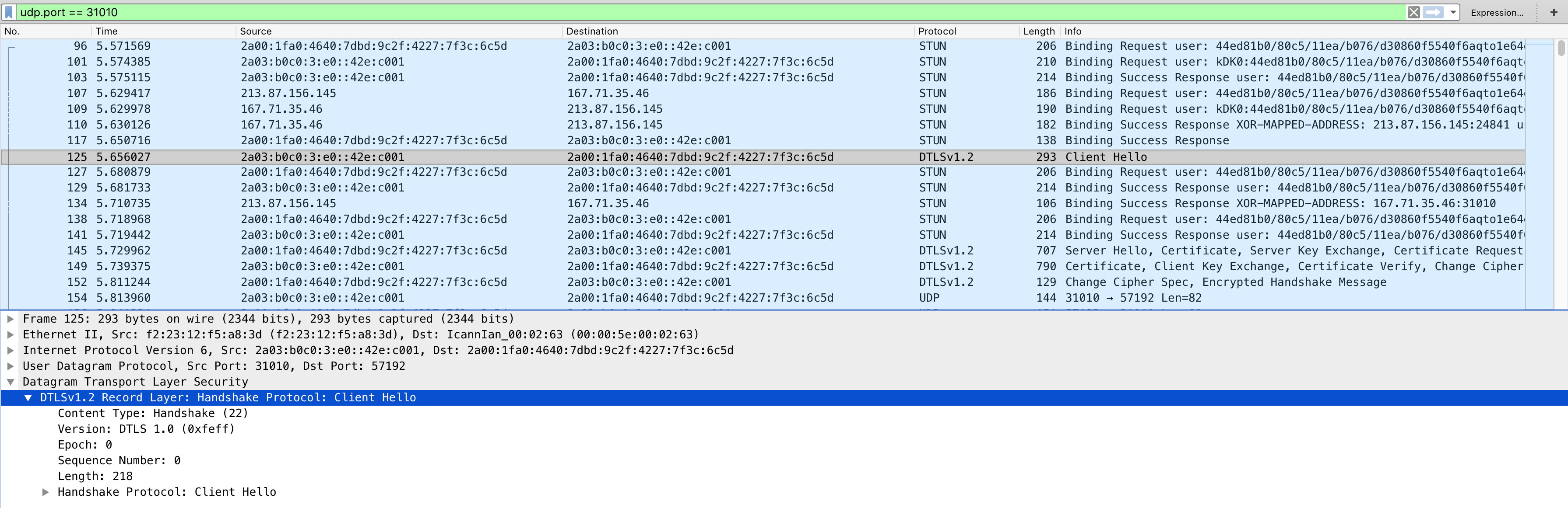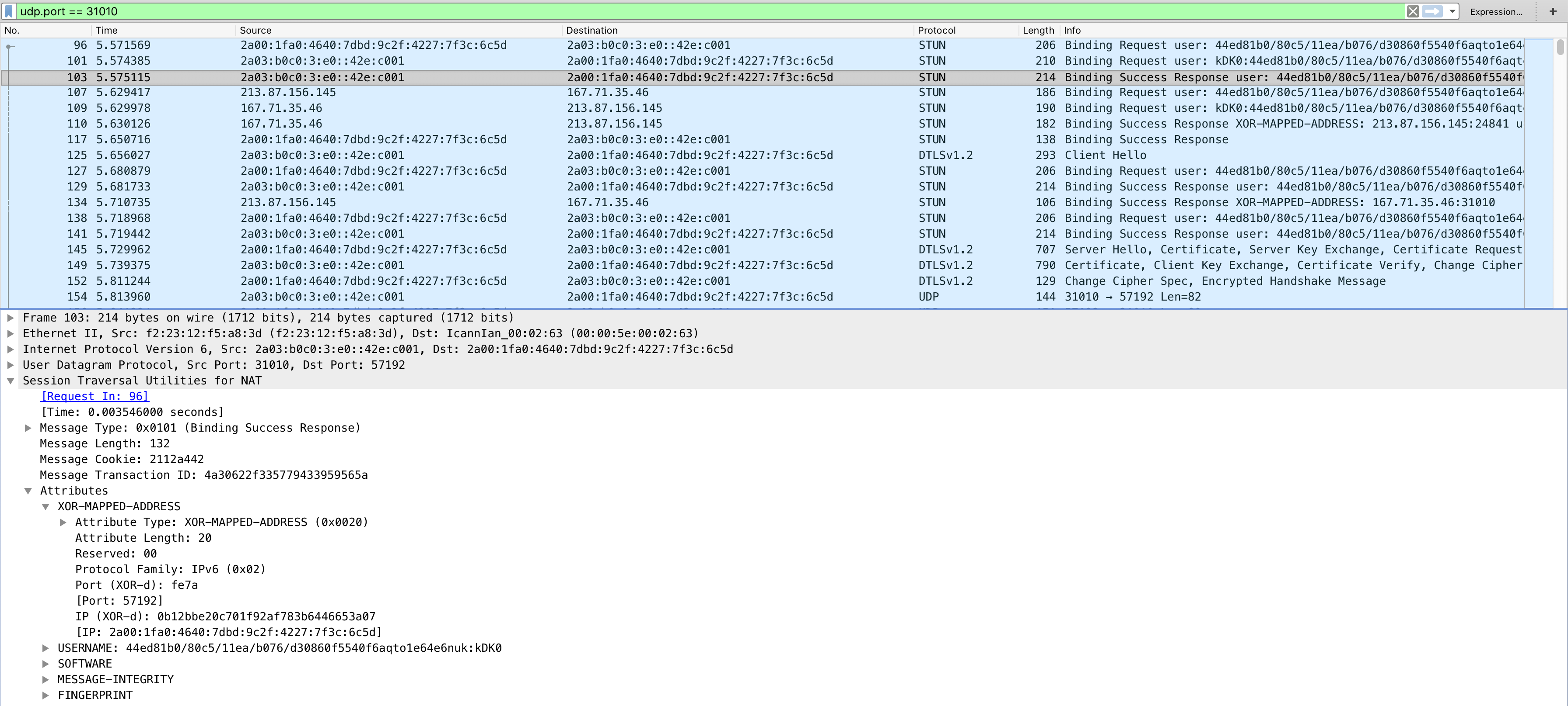 When establishing connection with Safari browser, IPv4 candidates are preferred unless some problem in STUN-DTLS procedure occur with such candidate. Therefore, in Safari IPv4 will be used if client has both IPv4 and IPv6 interfaces working and traffic between client and server is not blocked. In other browsers (see example pictures above) IPv6 candidates are preferred.
