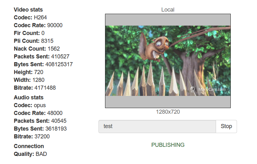 When a WebRTC stream is publishing, picture quality depends on media data transfer channel between client and server, especillay for high definition streams (HD, FullHD, 4K). The ability to control channel quality and notify publisher about bandwidth decrease in time using WebSDK was added since build 5.2.398. Subscriber, in its turn, can be notified about bandwidth decrease since build 5.2.409.