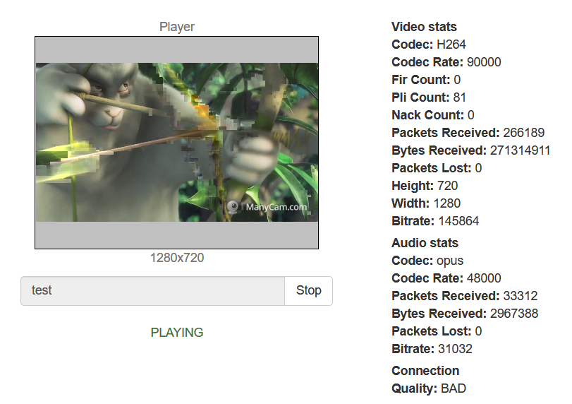 If channel quality is changed steadily to BAD, it means channel bandwidth is not enough, picture freeze and artefacts are observed. It is recommended to request the stream with lower bitrate and/or resolution if possible.
