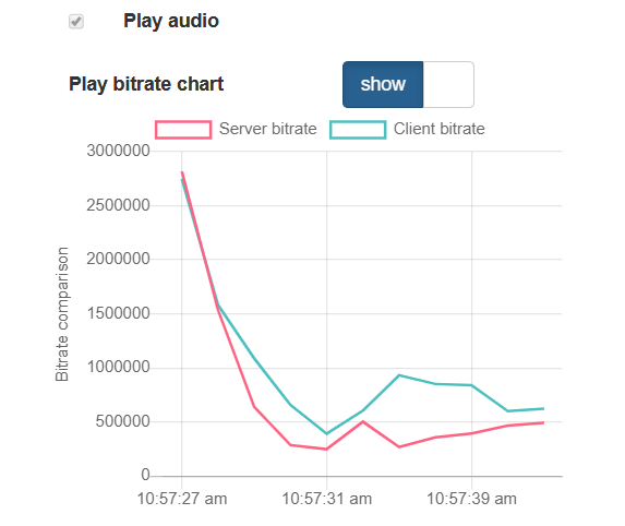 The settings above define bitrate values sending interval in seconds. It is recommended to send bitrate to client every second.