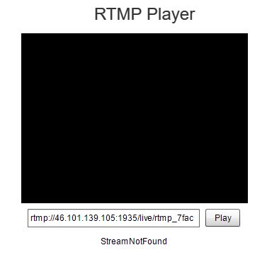 The RTMP player will stop showing the image then, and below the window you will see the StreamNotFound message: