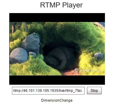 In a new tab open the WebRTC as RTMP web application. In the field under the RTMP Player window specify the URL of the Wowza server and the name of the stream you obtained on the previous step. Click Play: