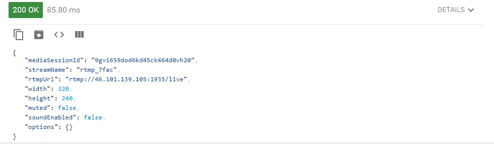 Copy the session identifier and the name of the stream published to Wowza server from the query response:
