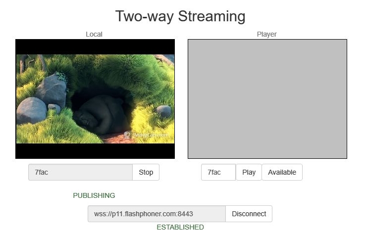 demo.flashphoner.com; - the Two Way Streaming web application to publish streams;
