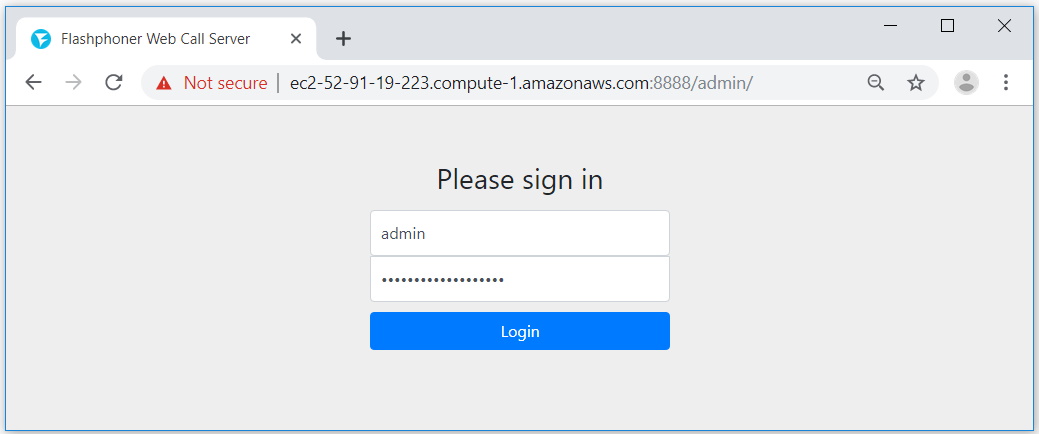 https://host.amazonaws.com:8888in your browser and accept security exception. Use the Instance ID of the launched virtual machine as the administrator password: