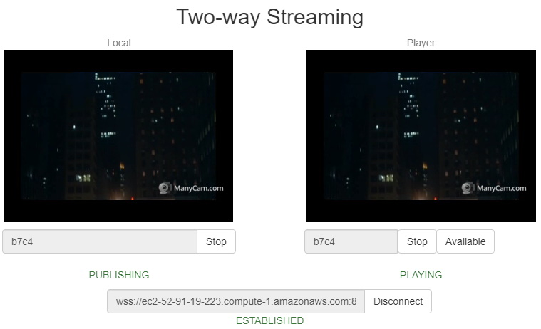 Check WebRTC streaming from web camera and playing the stream using Two-way Streaming web example: