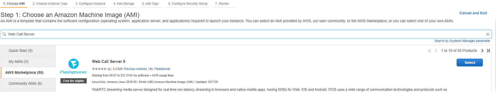 This way is useful if you need fine OS tuning, additional modules installation and so on. Launch a Linux virtual machine by this AWS manual, set it up on your need, then install WCS by quick or detailed installation manual.