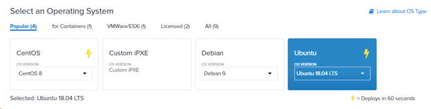 3. Choose Ubuntu 18.04 LTS operating system