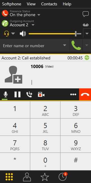 To terminate the call, tap the Hangup button in the app, or click the end call button in the softphone.