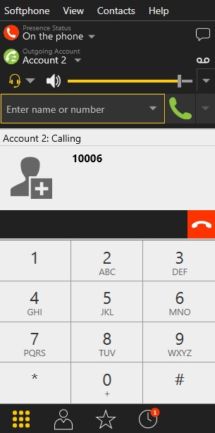 In the softphone enter the identifier of the SIP account that receives the call and click the call button: