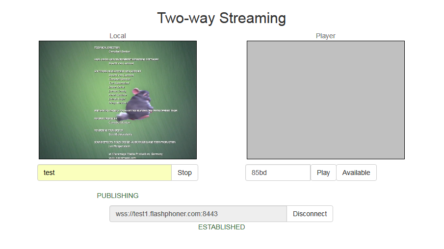 Two Way Streaminghttps://demo.flashphoner.com/client2/examples/demo/streaming/two_way_streaming/two_way_streaming.html, опубликуйте поток с веб-камеры