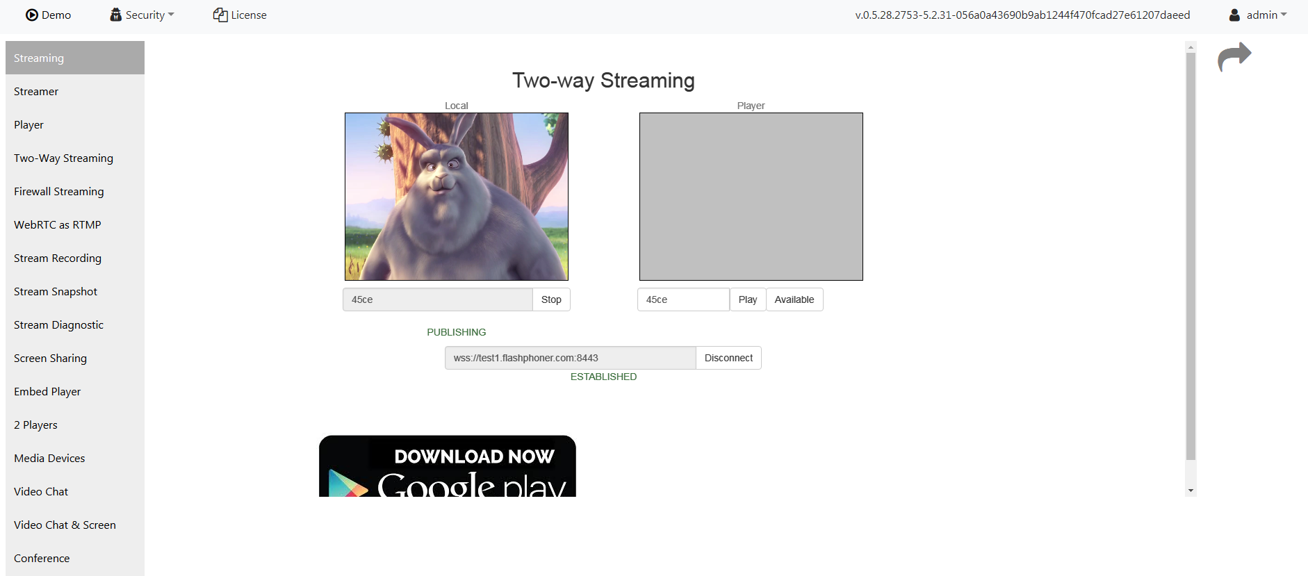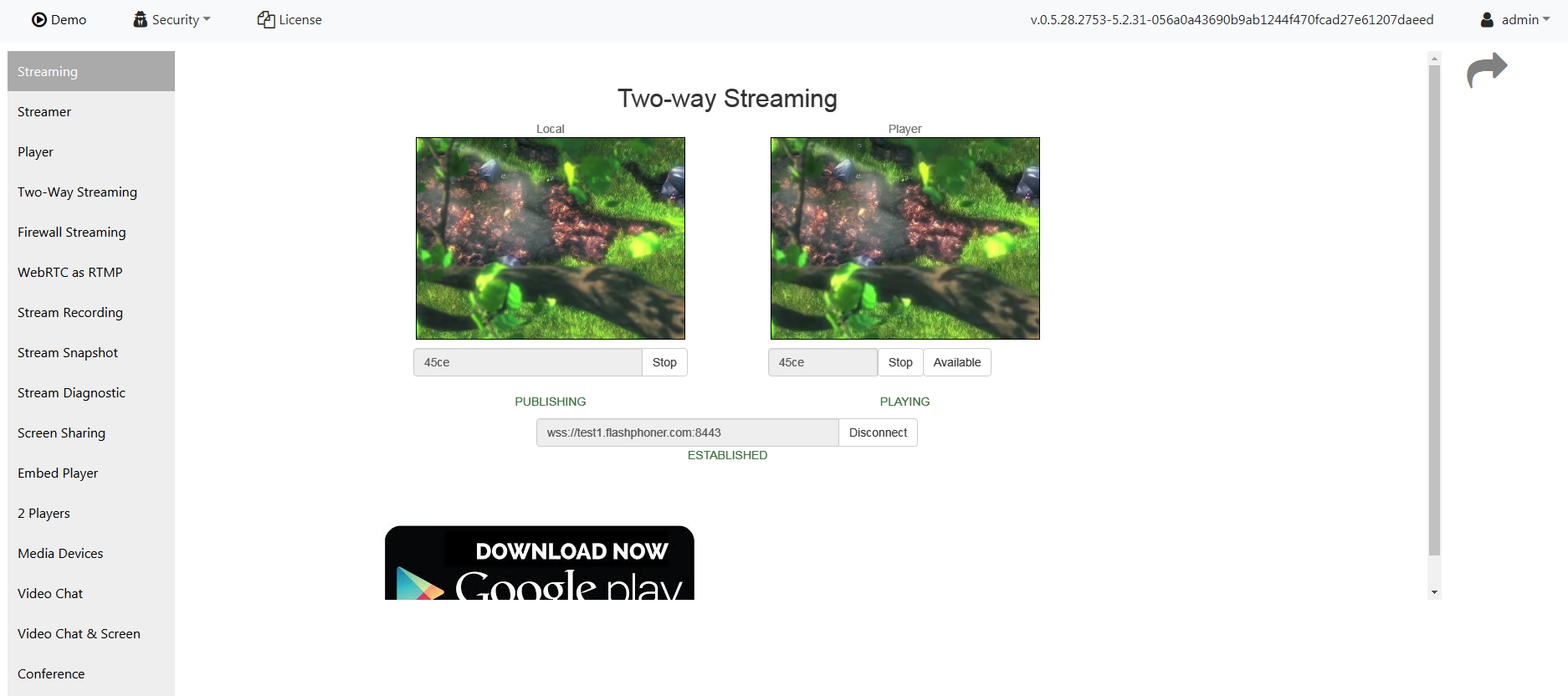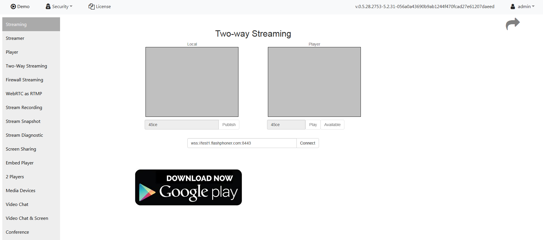 Выберите пункт "Two-Way Streaming". Откроется соответствующее веб-приложение: