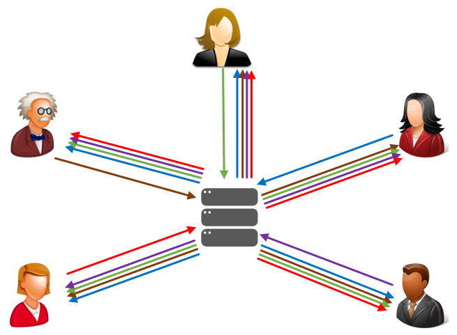 Поскольку одним из случаев применения SFU являются видео и аудио конференции, на стороне сервера введена новая сущность - комната. Установив соединение с сервером, пользователь подключается к комнате и может публиковать свои потоки, а также проигрывать все потоки в данной комнате. За пределами комнаты потоки, опубликованные в ней, недоступны.