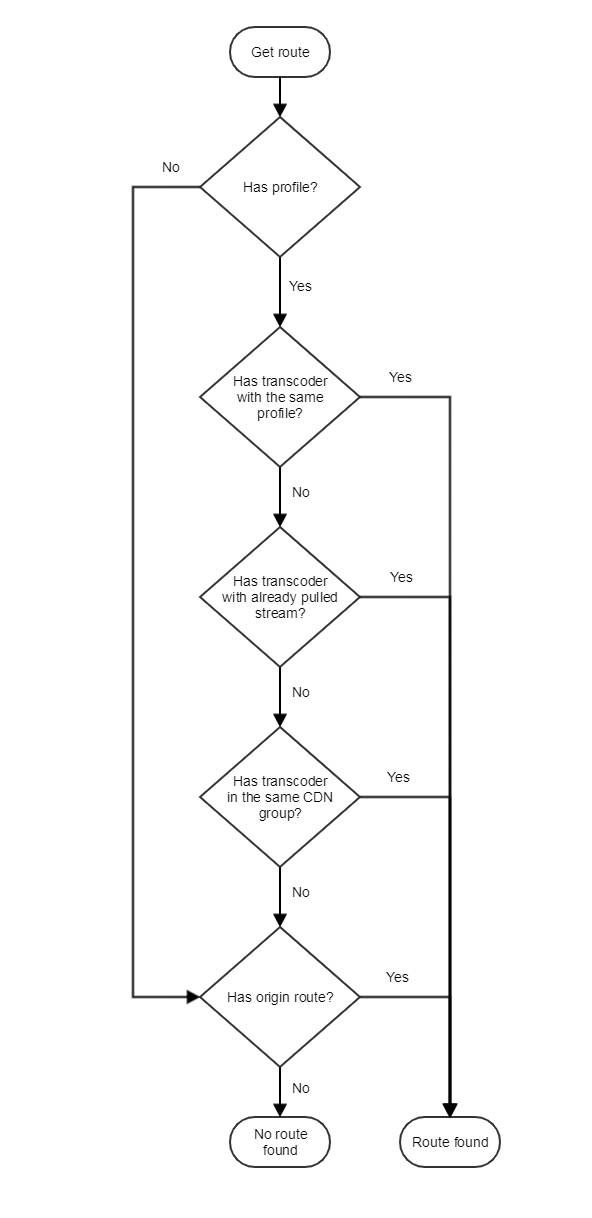 Конкретный узел для транскодирования выбирается при выборе маршрута для воспроизведения потока.