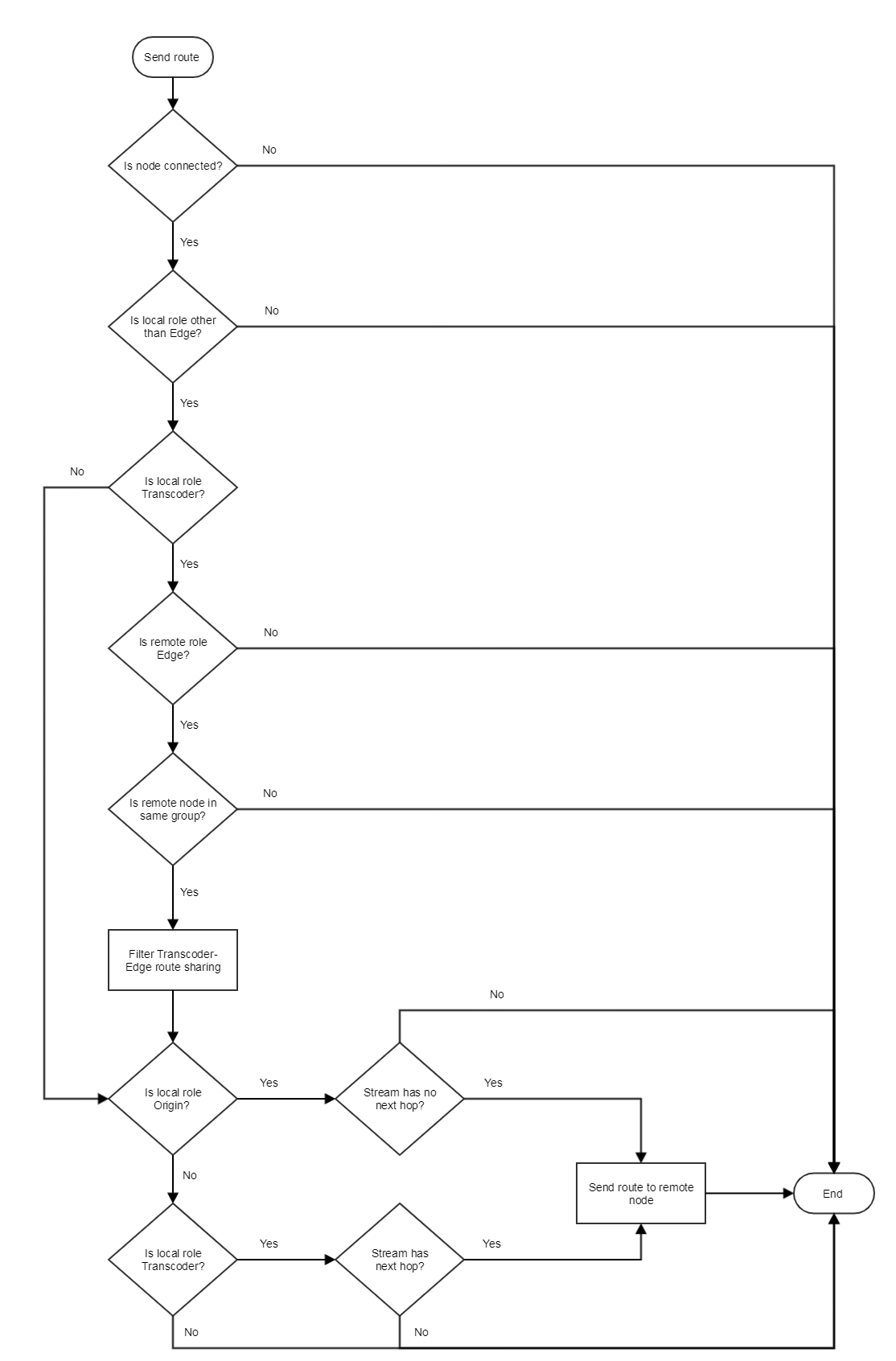 Участвует ли узел в выборе маршрута для воспроизведения потоков: - NEW_STREAMS_ALLOWED - участвует- CONNECTION_ALLOWED - позволяет только забирать уже транскодируемые потоки, в том числе по новым профилям- GROUP_CONNECTION_ALLOWED - не участвует
