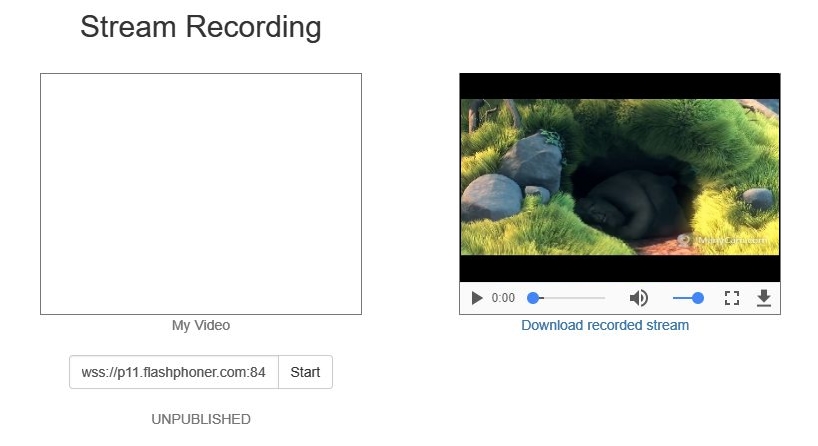 1. Для теста используем демо-сервер demo.flashphoner.com и веб-приложение Stream Recording