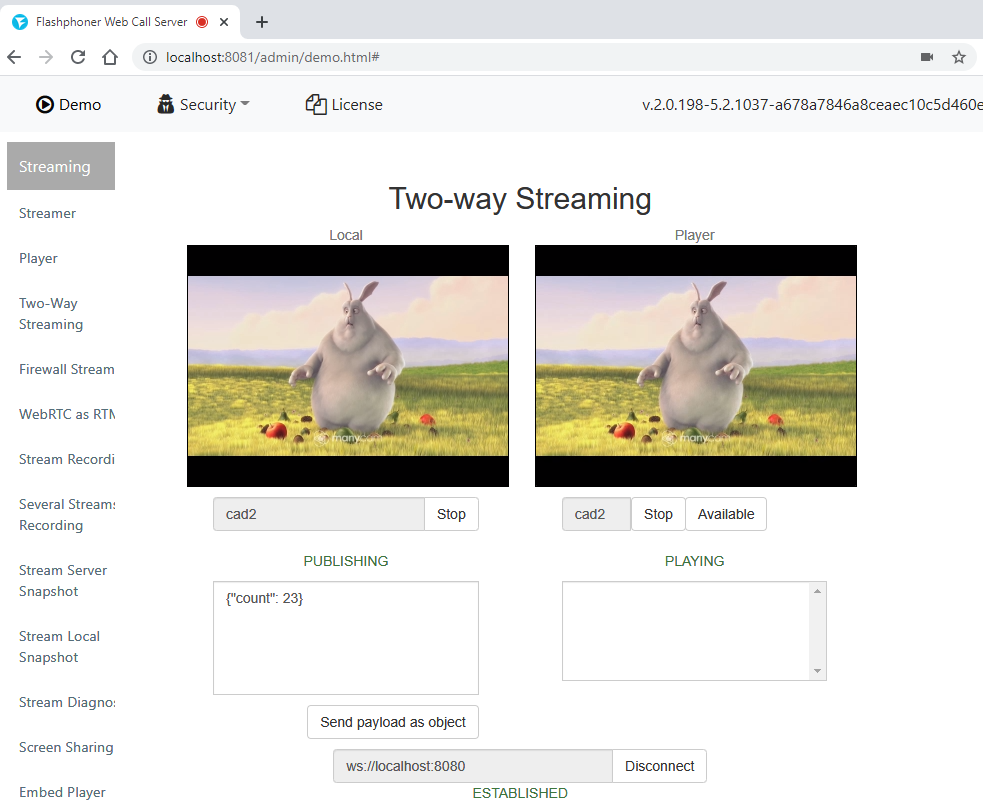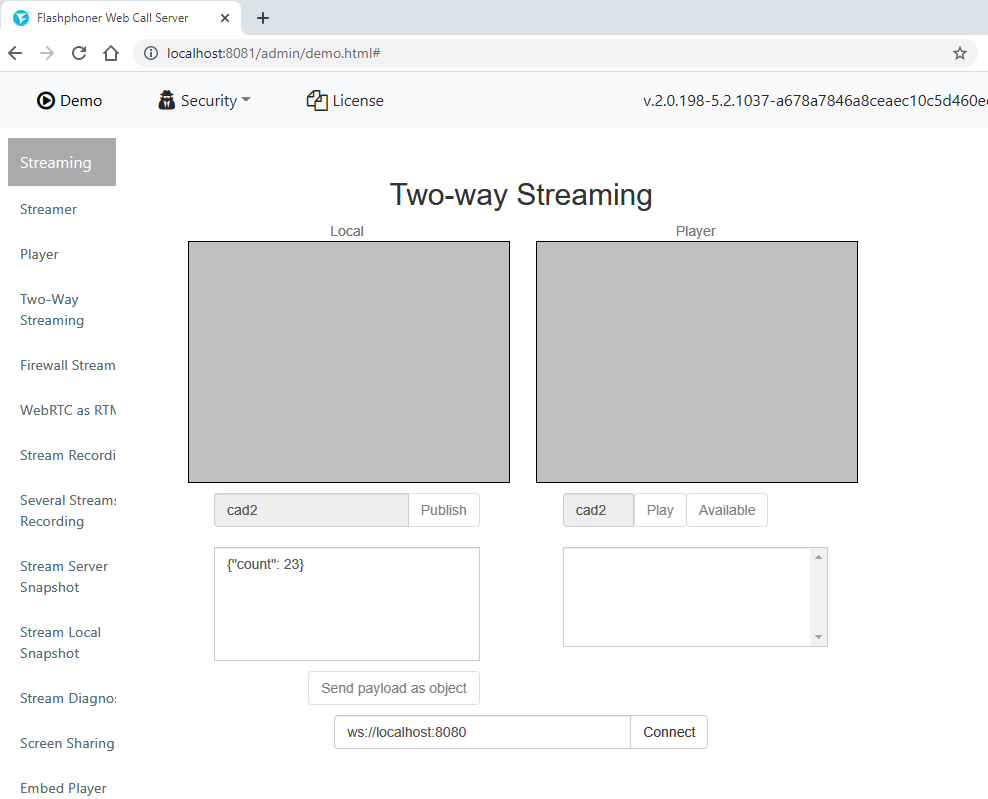 1. Откройте веб-интерфейс WCS в браузере по ссылке http://localhost:8081/admin/ и введите имя пользователя demo, пароль demo