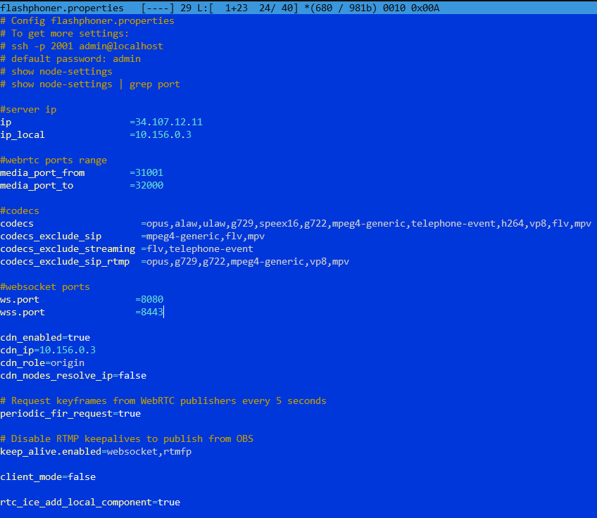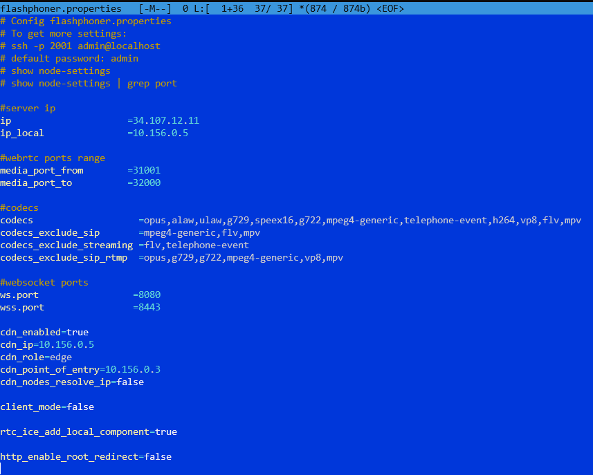 Не изменяйте IP адреса в параметрахip,ip_localиcdn_ip, они будут проставлены автоматически при старте сервера.