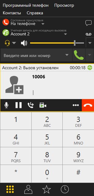 В программном телефоне убедитесь, что звонок начался: