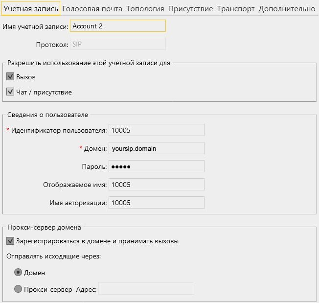 Запустите программный телефон, введите данные звонящего SIP-аккаунта: