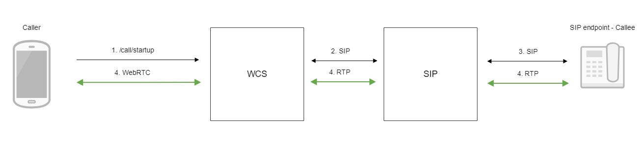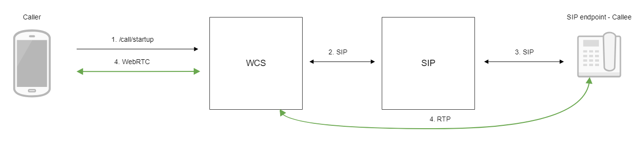 - WCS соединяется с SIP-сервером
