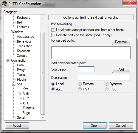 После того как вы вошли в терминал вашего Linux-сервера с использованием логина и пароля, ваш тунель будет перенаправлять обращения к localhost на этот Linux-сервер для указанных портов. Ниже показаны настройки SSH-туннеля в Putty.