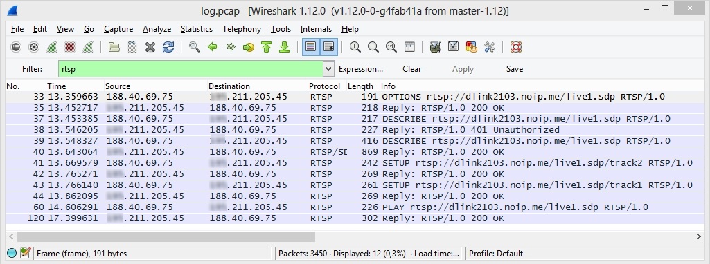 После установки соединения по RTSP, от камеры начинает идти обычный RTP трафик