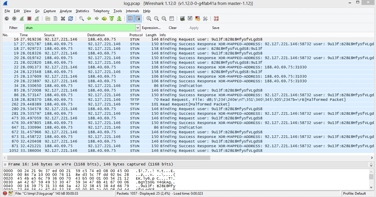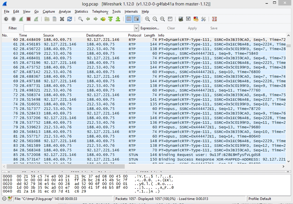 Так выглядит обмен ICE-транзакциями перед установкой соединения. В дампе это обычные STUN запросы и ответы. После того, как соединение установлено ICE продолжает работать для мониторинга установленного соединения. Если в результате мониторинга ICE перестал проходить, то звонок будет прерван